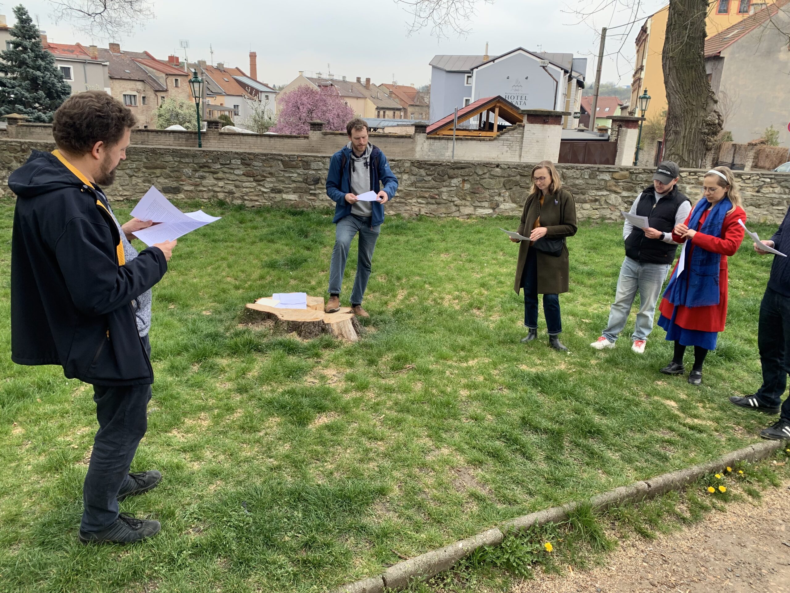 Když dojdou ke známému kostelu Matky Boží, rozdává učitel Ján Mihál z kutnohorské ZŠ Tomáše Garrigue Masaryka pracovní listy a učitelé, nově v roli žáků, se vydávají hledat v parku znaky někdejšího hřbitova či spočítat historické vchody do chrámu.
