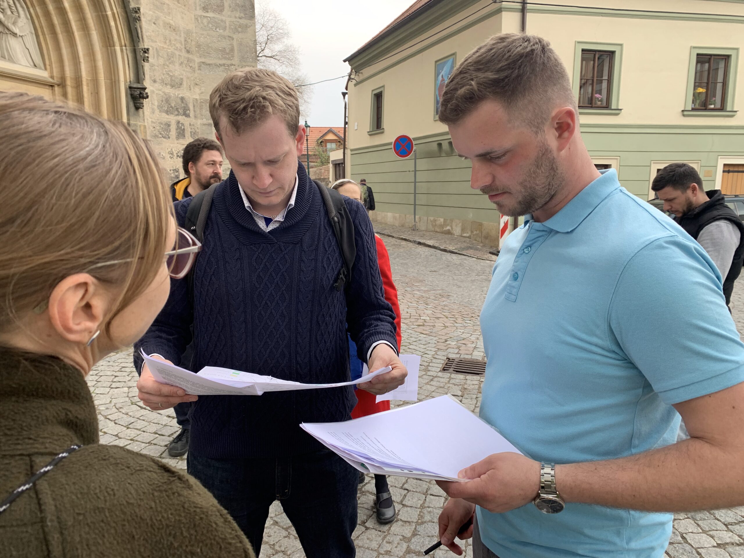 Dnešní setkání se ovšem trochu liší – skupina po chvíli opouští historický sál CPV a vyráží na zážitkovou výuku přímo do ulic. Cílem je projít město očima žáka, otestovat badatelské úlohy přímo na konkrétních místech a přemýšlet, jak propojit lokalitu, otázku a historické myšlení tak, aby učení bylo smysluplné a zakotvené v kontextu.